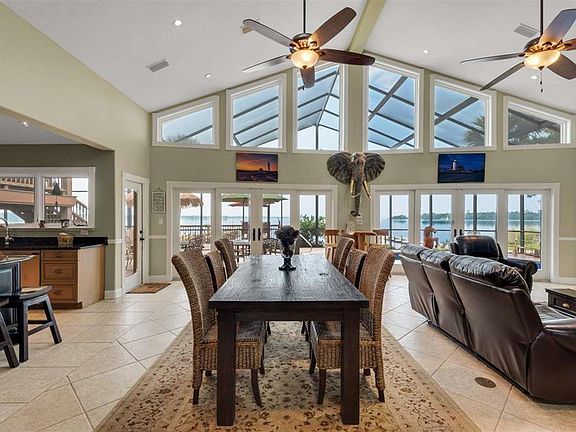 Executive waterfront living at it's best and room to entertain the entire family! This remarkable home has 5 bedrooms and 3 baths, 3 separate living areas plus an office, workout area (or study). Beautiful outdoor areas including screened enclosed pool, and porches, lanai area, natural beach, hammock area, and boathouse with lifts. As you enter this stunning home you are met with panoramic views of the bay, a large great room and open gourmet kitchen featuring granite countertops, gas range and double ovens, pantry, large center island, and instant hot water (200 degrees). The large master suite, has sitting area, enormous walk-in closet with separate laundry hookups, peaceful screened porch overlooking the bay, bamboo flooring, master bath with travertine flooring, granite countertop doub