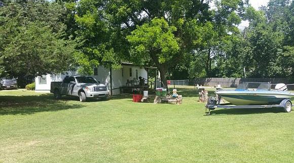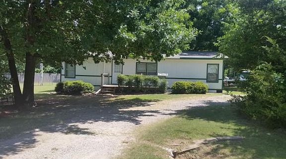 Nice DW mobile on acreage with textured walls, split bedroom plan with some updates to include kitchen/entry flooring, siding on front, front door, sink/faucet in hall bath, kitchen faucet, guttering, window screens, paint, and front steps. The refrigerator, washer, and dryer will stay with home. The 22x24 outbuilding has electric (dirt floor). Lot is beautiful with plenty of shade.