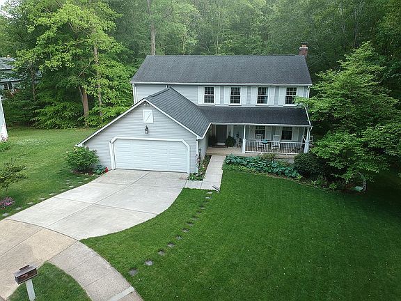 Beautiful landscaping, welcoming front porch, winding pathways and the most peaceful woodland setting embrace this redesigned and updated Colonial. Gleaming hardwood floors flow throughout the open floor plan of this 5-bedroom, 3.5-bath home with rich crown molding. Updated windows and French doors provide generous views of the forest and invite natural light.