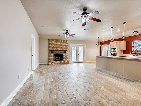 This 3 bedroom 2 bathroom home in Spinnaker Cove has an open layout that is perfect for living and entertaining. Fireplace and luxury wooden plank tile floors warm the living area. Master bedroom has ensuite bathroom with dual vanities, separate shower and tub and a walk in closet. Large laundry room that can be used as a pantry or other storage. Custom French doors lead to the outside living space with unique seating area around a firepit on the large open patio. Remodeled in 2018. Back yard is large and spacious with storage shed that conveys. Come check it out!