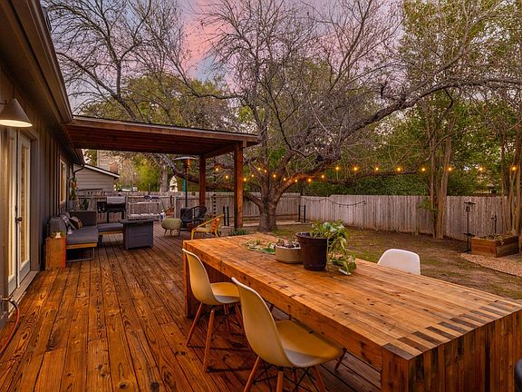 Incredibly stylish and fully-remodeled South Austin home in a wonderful neighborhood with no HOA!! Every piece of this 3-bedroom, 2-bathroom house has been gorgeously updated. The kitchen is tastefully crafted with quartzite countertops, a wine fridge, stainless steel appliances and an island that leads into the living room, perfect for entertaining. While you're enjoying the fall evenings, step outside onto the new oversized deck, overlooking a huge, private backyard and a one-of-a-kind bar shed! Floors, paint, windows, light fixtures and trim throughout have been redone and there's even a mini-split in the garage that heats and cools. Great floor plan with an impressive primary bedroom on one side that boasts a brand new luxurious bathroom and storage-friendly walk-in closet. On the other side are a guest bedroom, full bath, and one more flex space with a murphy bed that offers an excellent office/bedroom option. See the full updates list in the documents. Electrical panel updated a few years ago too. Easy access to shopping, restaurants and downtown. Come see this unique beauty today.