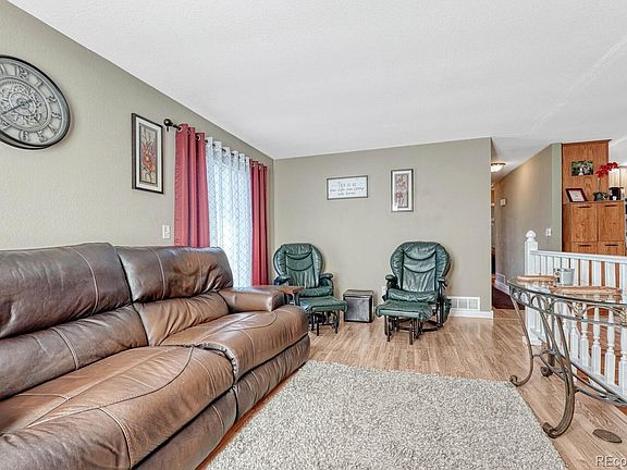 Discover the perfect blend of comfort and convenience in this lovely 4-bedroom, 2-bath ranch nestled in the serene Roxbourgh Village neighborhood, an area that truly captures the essence of a vibrant, active lifestyle. Positioned gracefully against the backdrop of the majestic mountains, this home offers access to parks, scenic trails, tranquil ponds, and more, making it an ideal setting for outdoor enthusiasts. The heart of this home is its open, eat-in kitchen, which features 42-inch solid oak cabinets, sleek slab granite countertops, tile backsplash, stainless steel appliances, and ample space for culinary exploration. The layout seamlessly integrates into the living room, fostering a welcoming environment for entertaining. The primary bedroom has direct access to the full bathroom with double sinks, a travertine tile floor, and a large soaking tub. Two additional bedrooms and a linen closet complete the main floor. Boasting 2400 finished square feet, the home includes a beautifully finished basement that offers a large bedroom, 3/4 bathroom, spacious family room, and an oversized laundry room, adding both functionality and extra space for various needs. Enjoy a backyard barbeque on the large Trex deck, complete with a practical pergola. The tiered backyard serves as a versatile canvas, ready for you to customize and transform into your very own landscaping or garden masterpiece.