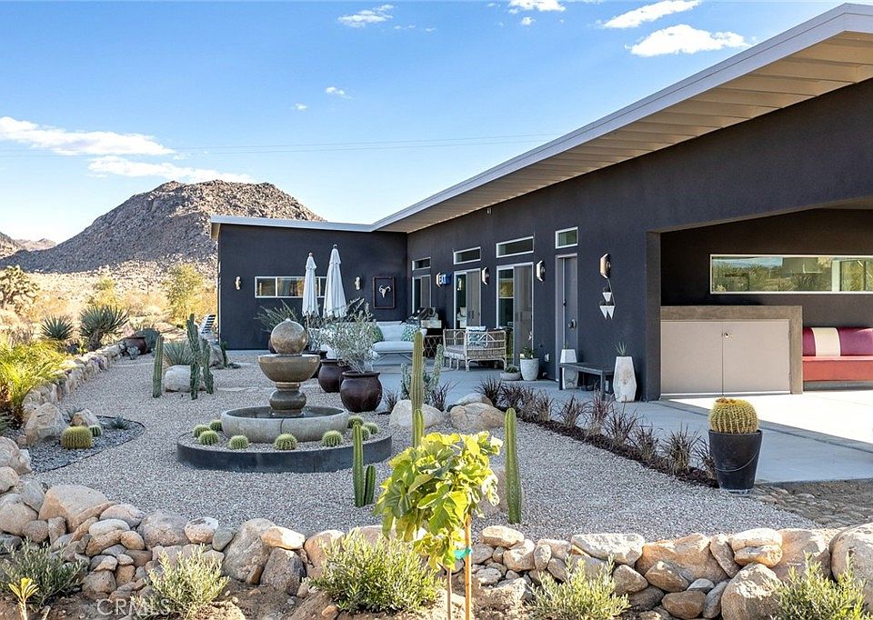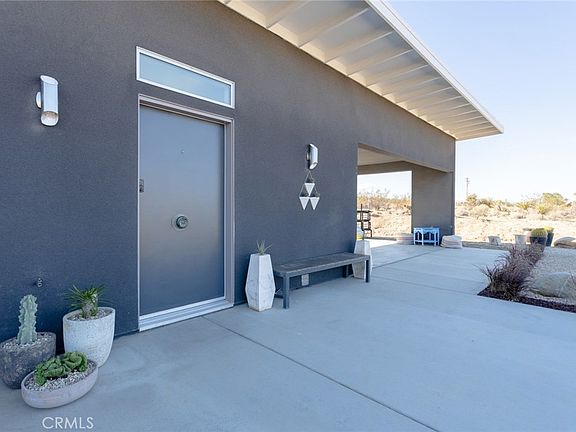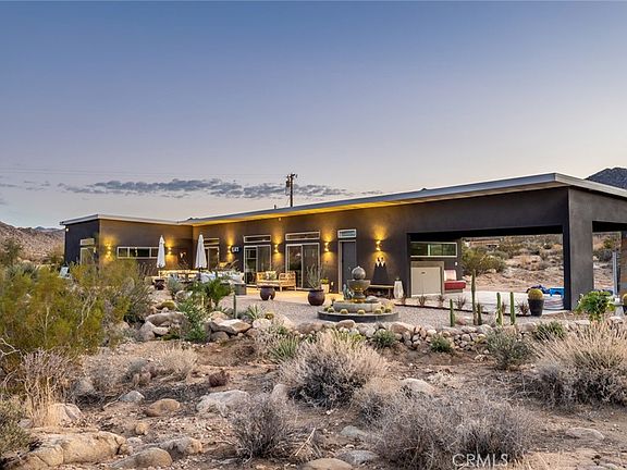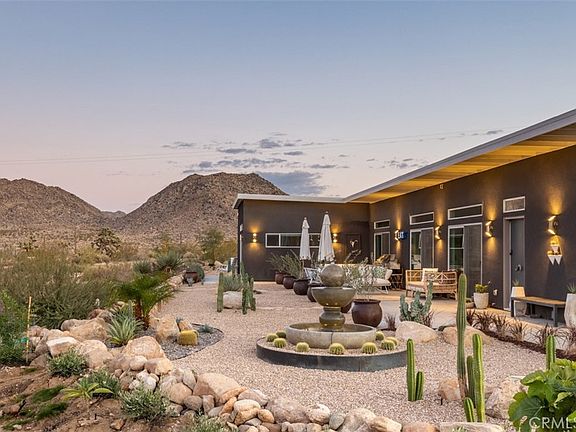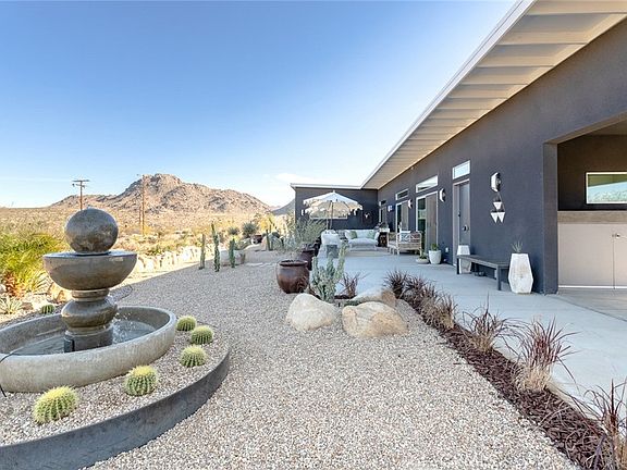 Contemporary Modern meets surrounding unbound nature in one of Joshua Tree’s most iconic areas. Meticulously designed and furnished 2-bed, 2-bath spread over nearly 2-Acres of land that doesn’t begin to explain the immersive, indoor/outdoor experience of this standout property. The main suite, for example, features sublime South African furniture, as well as a bright, oversized bathroom with huge soaking tub and a gated courtyard area through the sliding glass door for a private outdoor experience. In addition, a casita-style private entrance leads into the second bedroom, also with an en-suite full-bath. Sliding glass doors span the open floor plan of main living area, revealing a massive landscaped, event-ready, patio area and onward as far as the eye can see to boulder-laden National Park. Highly-rated short term rental due to the home’s many features plus a long list of unbeatable amenities that are included with the property, such as a hot tub, entertainment system, fire-table, security cameras, washer and dryer, and much more. Turnkey prepared to be taken over by new owners or retired into a long-term residence or superb primary residence with unmatched surroundings.