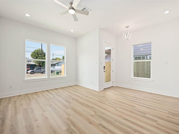 Be among the first to call this 2025-built, never-lived-in home your own! Featuring 3 bedrooms, 2.5 bathrooms, and 1,551 sq. ft., this modern single-family home offers wood-style flooring, soaring ceilings, and abundant natural light. The chef’s kitchen includes a quartz waterfall island and stainless steel appliances. Enjoy a bright, open layout with a glass stair railing, illuminated stairs, and a fully fenced backyard—perfect for relaxing or entertaining. Located at 7803 Avenue E, this home blends style, comfort, and convenience in a sought-after Houston neighborhood.