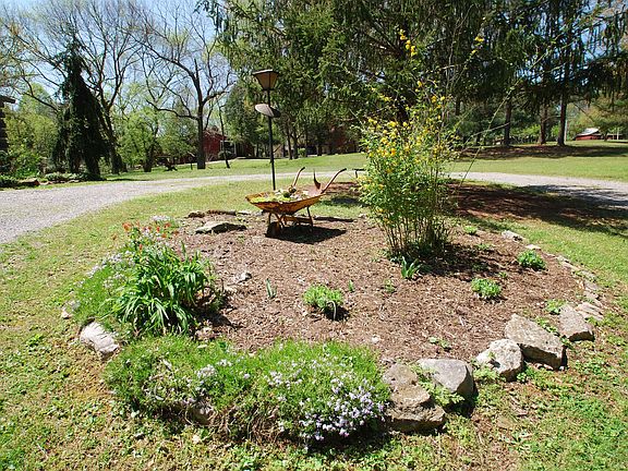Rocking chair front porch w/ postcard setting! 3 Porches, 20x17 screened deck, fire pit and creek, 2 story 30x18 det. building w 2nd story heat/cool space, 3 stall horse barn, custom kit by Tate Ornamental, full unfin. basement w/ half bath