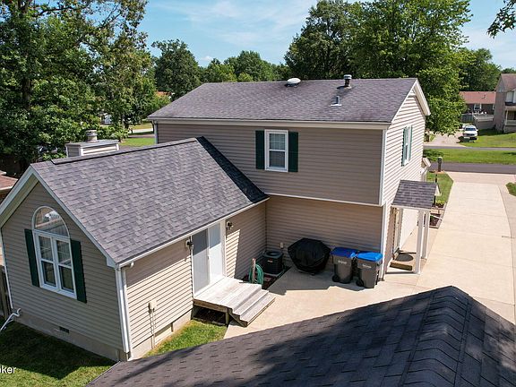 This wonderful 2-story home in the sought-after community of Apple Valley is sure to please with just under 2000 Sq. Ft. of living space and a custom 2+ car detached garage. You will love the covered front porch which opens into the spacious living room with a wood burning fireplace and Berber carpeting. Behind the living room is the large eat-in kitchen with solid surface countertops & Pergo flooring. There is a hallway leading from the kitchen to the side porch for ease of unloading groceries, etc. In this hallway you will find a half bath, a laundry area, closet/pantry and mechanical closet. Behind the kitchen you will find a vaulted great room with wood burning fireplace (with heatilator), Berber carpeting, a palladium window and sliding doors opening to deck. The light-filled great room also offers built-in bookshelves, planning desk and 2 ceiling fans. The 2nd floor offers 3 generous bedrooms and a full bath with new fiberglass tub/shower, ceramic flooring and granite top vanity. The yard is partially privacy fenced and offers a 10' X 10' storage shed. You will love the extra wide driveway leading to the fully insulated, oversized 26' X 30' garage with 9' ceilings and an 8' tall,18' wide insulated garage door suitable for large SUV's & Trucks. A 60-amp electric panel, a 220-amp outlet, floor drain along with pull down staircase to the floored attic for all your storage needs along with space for a workshop. The crawl space under the house has a vapor barrier and an insulated foundation. This house has been lovingly maintained and wonderfully updated. The original 1-car garage was removed with a side porch added when the garage was added in 2005. Average LG&E - $148/mo. and Average Water - $90/mo.