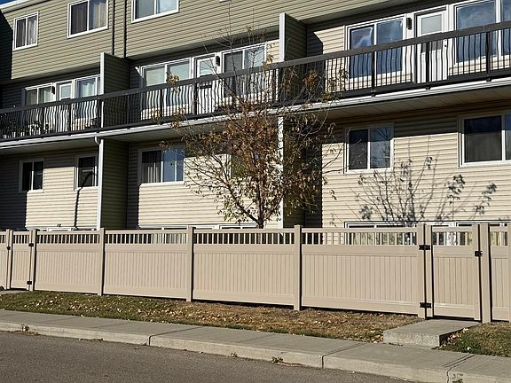 Beautifully reno'd 2 bed, 1 and a half baths in prestigious Patricia Hgts. WALK TO MEADOWLARK MALL!! Private and sunny fenced patio has a BRAND NEW FENCE!! Excellent location in the complex (3 fenced patios down from West Entrance area.) Spacious, treed grounds. Electrified stall is included and others can be rented for $35./month. Lovely, spacious white kitchen with eat at breakfast bar. Stainless appliances and tons of cabinets. Great half bath on main level with the perfectly sized sink for washing the little pets! Main floor dining room fits a large table. Two spacious bedrooms up with a full beautifully renovated bathroom. Amazing mirrored medicine cabinets holds tons of stuff! Vinyl sheet flooring upper level, Composite tile main floor and in bathrooms. Main bedroom has a large walk in closet.This complex is close to excellent schools, shopping, restaurants and hospital. Pets with board approval. Upgrades to bldg. include windows, patio doors, siding, roof, fence. EXCELLENT VALUE!