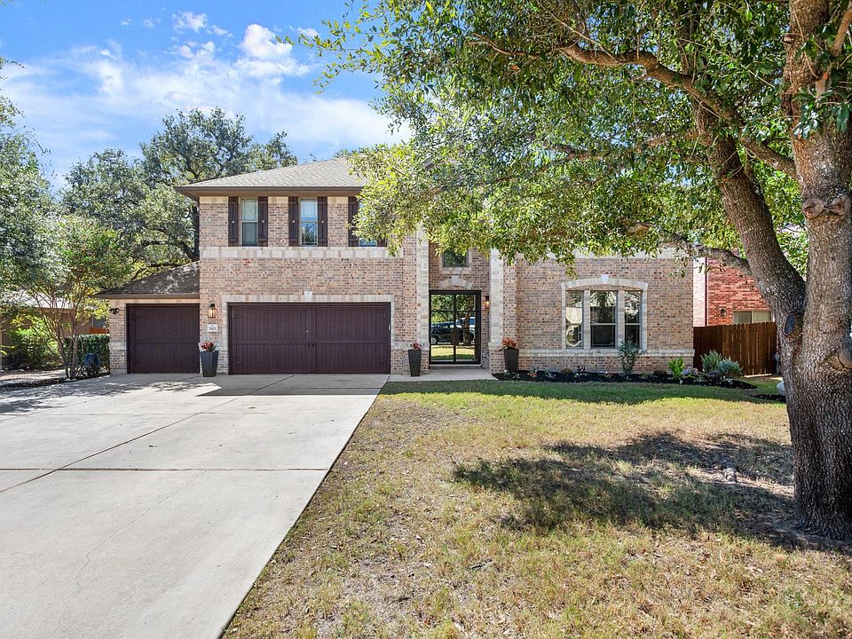 Nestled behind the gates of Fairway Estates in Circle C Ranch, this beautifully updated two-story home offers the perfect blend of elegance, comfort, and thoughtful design on a spacious lot surrounded by mature trees. The main level welcomes you with engineered hardwood floors throughout, a dedicated office with French doors, and an inviting open floor plan that seamlessly connects the living, dining, and kitchen areas. The kitchen is a true showpiece with Taj Mahal quartzite countertops, marble flooring, new cabinetry with Rejuvenation hardware, and top-of-the-line appliances including a 48" Monogram dual oven and 6-burner range with griddle, built-in 48" refrigerator and freezer, KitchenAid icemaker, refrigerator drawers, and a wine cooler. Elegant details such as Restoration Hardware light fixtures and Kohler plumbing fixtures add a refined touch throughout. A bedroom and full bathroom downstairs provide flexibility for guests or multigenerational living, while the laundry room offers custom built-ins, shelving, and a Calcutta Gold quartz folding counter. Upstairs features four bedrooms and two full baths, including a serene primary suite, plus a spacious layout ideal for relaxation and privacy. Every room in this home has an abundance of space. Step outside to the covered back patio with ceiling fans and a stucco fireplace—perfect for entertaining or quiet evenings at home. The expansive backyard provides plenty of room to enjoy the outdoors. Located in one of South Austin’s most desirable communities, residents of Circle C Ranch enjoy access to multiple pools, parks, trails, and sports courts. Nearby attractions include Grey Rock Golf Club, Lady Bird Johnson Wildflower Center, Veloway Trail, and Circle C Metropolitan Park. Shopping, dining, and conveniences at Escarpment Village are minutes away, with easy access to Mopac and downtown Austin. Refined, functional, and perfectly placed—this Fairway Estates home offers the best of Circle C living.