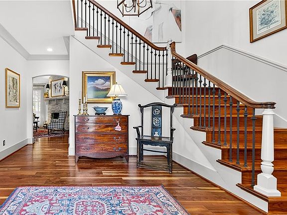 Welcome to this custom built one-owner 1.5 sty villa. Located in the highly sought after Crescent Court Community, this 4,030 sqft home combines timeless design, superior construction, and everyday convenience. The expansive entryway w/ soaring ceilings and sweeping staircase introduces the home’s warmth and craftsmanship. Rich walnut floors, 1¾" solid wood doors, and custom millwork highlight the exceptional quality found throughout. The kitchen is a showpiece w/ vaulted ceilings, cherry cabinetry, granite countertops, and professional-grade Thermador appliances—including a paneled refrigerator w/drawers, double ovens, and 6-burner gas range. The adjoining hearth room features a beautiful stone gas fireplace and convenient wet bar, creating the perfect gathering spot. The spacious living room showcases another gas fireplace w/a custom mantle and built-ins, enhanced by abundant natural light and walnut flooring. The main-level primary suite offers plantation shutters, ceiling fan, and expansive walk-in closet w/center island, plumbed for a stackable washer and dryer. The ensuite bath includes double vanities, jetted soaking tub, large walk-in tile shower, and private water closet. Upstairs, you’ll find four additional bedrooms—each spacious with generous closets and beautifully upgraded bathrooms. Two bedrooms being large suites w/their own private bathrooms and the remaining two bedrooms being accommodated by a shared bathroom. Don’t miss the additional finished space over the garage! Additional features include plantation shutters throughout, E-glass casement windows with true divided light, two HVAC systems, two dedicated office spaces that provide flexibility for work or hobbies, and a huge daylight lower level offering 2,200 sqft ready for finishing. Outside, enjoy the private brick patio framed by a stunning stone wall, lush landscaping, all-copper gutters, and stone chimney. A rare opportunity for quality, privacy, and location in the heart of Kansas City.