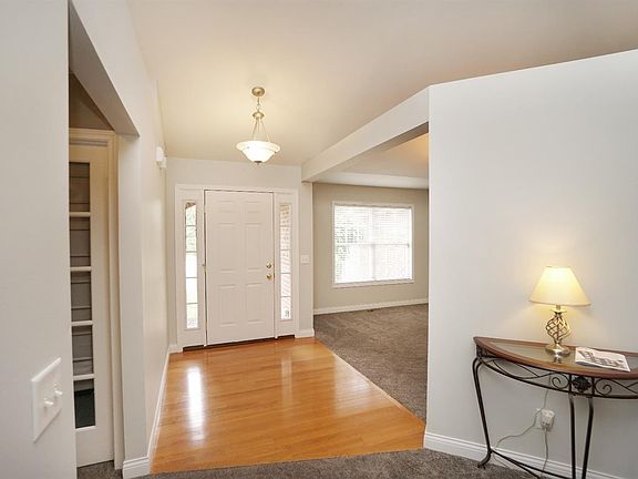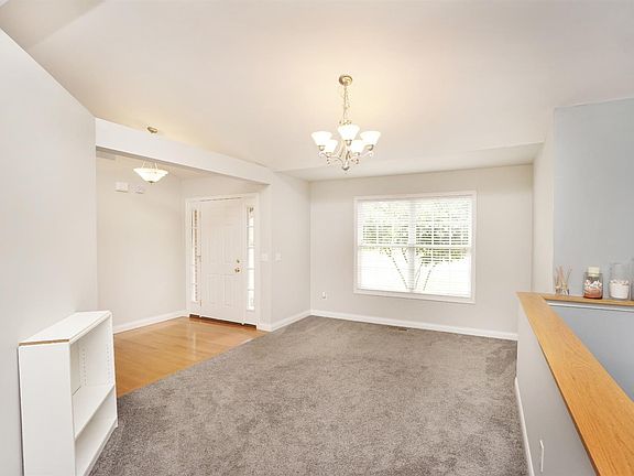 Freshly painted in dining room, living room and laundry room. Vaulted ceilings, hardwood floors, kitchen w/maple cabinets & stainless steel appliances. Walkout to patio & wooded level lot. Full basement ready for your finishes. Cul-de-sac street. Close to lake, pool, play area, tennis, clubhouse and walking paths.