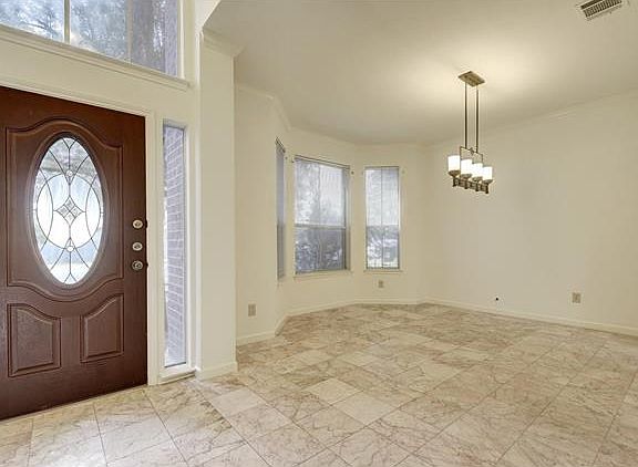 Remodeled kitchen, with stainless steel appliances and modern glass backsplash, marble floors, updated lighting, kitchen is open to family room, large gameroom upstairs, large back yard, lots of trees for shade, great floor-plan with master down, large bedrooms and lots of storage! Neighborhood with community pool, walking paths & play area, RRISD, school in walking distance!