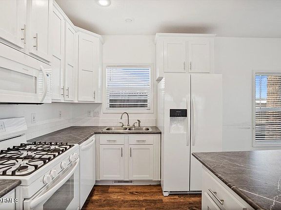 Welcome to this stunning 2022-built home located in the vibrant 55+ community of Agave Village. This beautifully maintained 2-bedroom, 1-bath residence offers a perfect blend of comfort and modern style. The bright and airy interior features vaulted ceilings and a sleek kitchen complete with white shaker cabinets, matching white appliances, a gas stove, and marble-look countertops with ample storage. Enjoy the active lifestyle with access to community amenities including a gated entrance, pool, shuffleboard courts, and a community center. A large outdoor storage shed adds extra convenience to this move-in ready home.