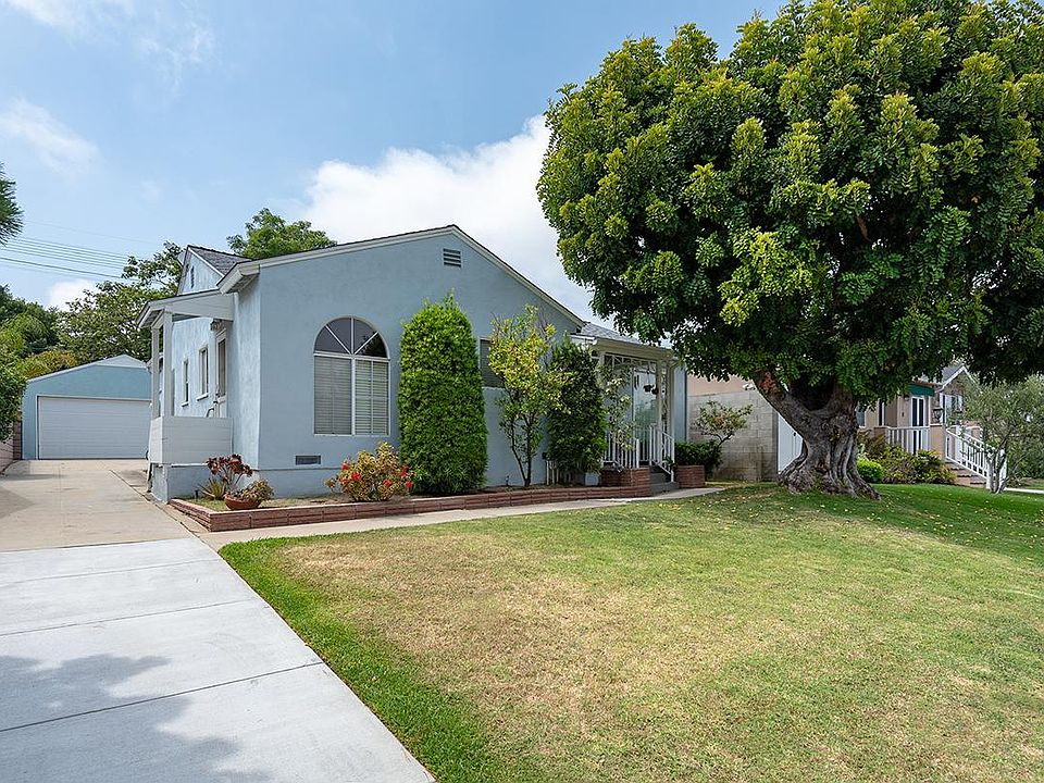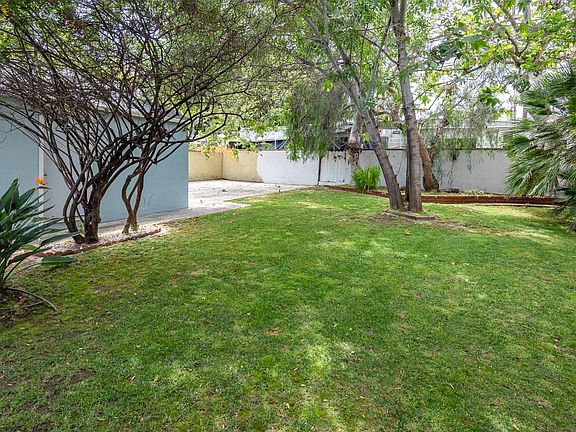 ) 1190 sq.ft. but there is considerable additional space in the enclosed rear patio with washer & dryer. There are 3 bedrooms and 2 full bathrooms. The master bedroom has 2 closets, one a walk-in, as well as its own full bathroom with spa tub and separate shower. Kitchen has a gas range, refrigerator and pantry. Newly refinished gleaming hardwood floors through most of the home. New blinds on all windows, new interior paint throughout. The lot is (