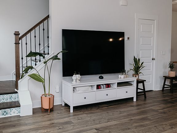 Extras include an 85" smart TV, washer, and dryer, all included with the home.