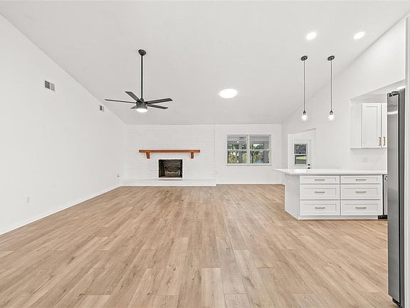 Welcome to your dream home in beautiful New Port Richey! This charming 4-bedroom, 2-bathroom residence offers stunning waterfront views, a two-car garage, and a host of modern updates all just minutes from local amenities, parks, and historic downtown. From the moment you arrive, you’ll love the adorable curb appeal and inviting atmosphere. Step inside to discover a spacious open floor plan with vaulted ceilings, where the living room, dining area, and kitchen flow together seamlessly perfect for everyday living or entertaining. The living room features a cozy fireplace, while the dining area is ideal for sharing your favorite meals. The fully updated kitchen is a chef’s delight, complete with new stone countertops, new cabinetry, stainless steel appliances, and a convenient breakfast bar with seating. Just off the entryway is the first airy guest bedroom, perfect for visitors or a home office. The primary suite, located near the kitchen, boasts a large walk-in closet and a stylish en suite bathroom featuring a dual vanity and modern finishes. Toward the rear of the home, you'll find a bright guest bedroom filled with natural light, and across the home are an additional guest bedroom with lake views, the second full bathroom, and a laundry room with a sink for added convenience. Step outside to enjoy the enclosed rear porch, offering tranquil views of the lake, a perfect spot for relaxing evenings or hosting friends. Beyond the porch is the backyard where you can enjoy the outdoors and take in the peaceful waterfront scenery. This home also features a new roof, a new HVAC system and a 2024 water heater, providing peace of mind for years to come. Plus, it’s ideally located just 10 minutes from historic downtown New Port Richey, less than 15 minutes to Gulf View Square Mall, and close to Robert K. Rees Memorial Park, great shopping, dining, and more. Don’t miss your chance to own this beautifully updated waterfront home in one of New Port Richey’s most desirable areas. Schedule your private showing today!