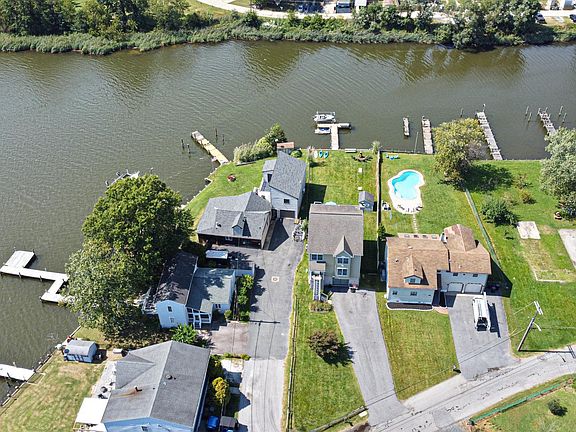 Welcome to this meticulous well cared for home with over 2200 sq. ft of living space. This home offers plenty of natural light in every room. The foyer upon entry leads you to the spacious eat in kitchen. The kitchen has plenty of real wood cabinets for storage and plenty of Corian counter space. All stainless steel appliances round out the kitchen. There is a large separate dining room off of the kitchen. Off of the dining room or through the foyer hall leads you to the spacious family room with plenty of seating to enjoy the wood burning fireplace for those chilly nights. A half bath is also located on the main level. Rear deck for entertaining or relaxing in those summer or fall evenings overlooks the rear yard. There is an awning that retracts from the home over the deck. The upper level has the 4 bedrooms and 2 full baths. Primary bedroom offer it's own private bath with jacuzzi tub and walk in closet. The ground level of the home has the oversized garage currently set up as an alternate entertaining area as well as a home gym. The rear yards leads to a private pier with boat docking for the powerboat owners. This home has a ton to offer and is a must see for those looking for their waterfront getaway!!!