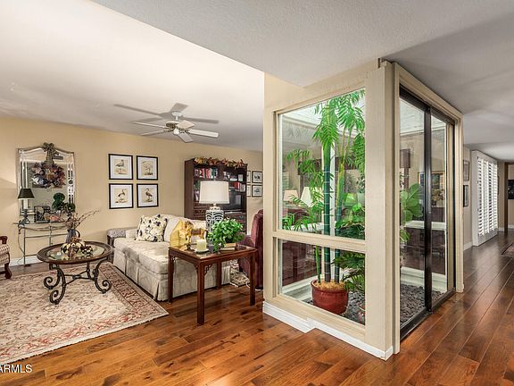 Welcome to Hacienda Del Rey, 85257's best kept secret! Offering 3-bed, 2-bath located on a corner lot with greenbelt views directly behind your backyard. Enter into the bright & spacious open living area anchored by a cozy fireplace and retro atrium while large arcadia doors invite the outdoors in and frame your greenbelt-backed patio space. The kitchen and baths shine with tasteful upgrades, and the generous primary suite offers a walk-in closet. Located just minutes from Old Town, Tempe Marketplace, scenic trails and community amenities, this is your move-in-ready Scottsdale sanctuary.