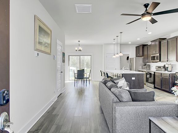 Located within the newest, Tributary section of gated, Park at River's Edge, the popular Dunlin floor plan's open concept is ideal for entertaining and a spacious light filled living area. Stainless Steel appliances, including refrigerator that conveys, large island with seating and pendant lighting, eat-in area as well so plenty of room to entertain. The laundry room, powder room and outdoor covered patio (with outdoor storage) round out the downstairs living space. Upstairs retreat space is home to the master suite and two secondary bedrooms. Conveniently located to commute to many of our areas major employers, Boeing, Bosch, Mercedes-Benz vans, Charleston International Airport, Tanger Outlets, MUSC, Joint Base Charleston and more. County parks, Top Golf near-by,as well as several golf courses 30-40 minutes to beaches. Top Tier neighborhood amenities include, pool, club house, tennis, lawn maintenance, walk/jog trails. Priced better than new construction. Home Warranty to convey.