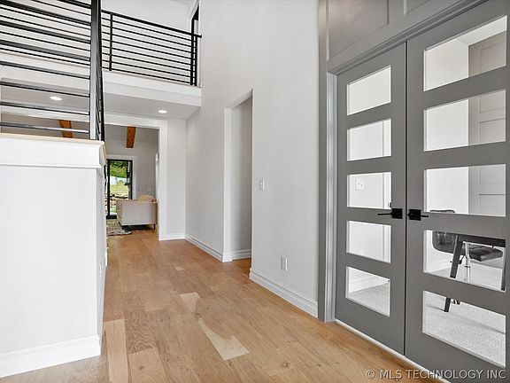 Discover unparalleled luxury and convenience in this recently built, stately home nestled on a .41 acre greenbelt lot within the prestigious gated community of The Lakes at Indian Springs. Located just across from the Indian Springs Golf Club, this residence offers seamless access to Tulsa Metro via nearby highways.