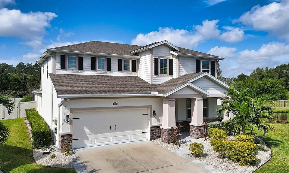 This is the one! This maintenance-free, spacious, and bright home on a Cul-da-sac was built in 2017 and had an elaborate pool with a waterfall, a large privacy fence, and a fire pit added in 2018. In addition to these wonderful features, this residence has a brand new A/C in 2023, a pool sundeck with fountains to lounge and relax in, a built-in custom wine cabinet refrigerator with a built-in glass partition at the top as a unique cork display feature, water misters on the pool deck, central vacuum, 5.1 surround sound in the living room, Nest thermostat, whole house water purification system as well as a home security system complemented with a ring doorbell, Tesla EV charging station in the garage, remote 3 sided faux fireplace with storage in the living room, new laminate floors upstairs and in the master bedroom, outdoor plumbing available on the pool deck and too much more to list! This beautiful home that has been meticulously maintained needs nothing. No expense was spared in this home! With the master bedroom on the first floor that looks out into the waterfall and a colored in-ground pool oasis, this home is ideal for any family configuration. Four total bedrooms include an upstairs master en suite with two bonus areas to ensure everyone in the house has their own private space and day activities could include a dip in the new pool, a corn hole tournament in the fenced-in yard, or a meal under cover on the patio. Night time could be spent toasting marshmallows at the fire pit or sitting on the porch swing greeting neighbors on their evening strolls. This home in a family-friendly neighborhood is not one to be missed. Smart Home lovers will enjoy smart bulbs, remote-controlled devices, and even smart fridges which makes this a futuristic connected home. Call today, to schedule your private tour! Click the link for a Virtual Tour! https://pix360.com/vtour/35703/
