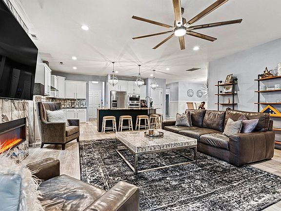 Welcome to 7809 Creek Park Drive! Where thoughtful upgrades and custom finishes set this home apart. From the moment you enter, you'll notice the elevated design choices that go far beyond standard construction. The bright, open layout is anchored by a gourmet kitchen with Carrara marble backsplash and a large island perfect for entertaining. A stunning 6.5 ft electric fireplace creates a cozy focal point in the living area. Custom wall moulding in the foyer and dining room adds timeless charm. The main-level primary suite offers two walk-in closets (one with custom built-ins), a soaking tub, and walk-in shower. Upstairs, enjoy a versatile loft/family room and a sunny bonus room. Step outside to a fenced yard with a pergola backing to a privacy berm. Yard care included for low-maintenance living! Located just 6 miles from boat access and LKN’s new swim beach, and close to shopping, dining, and highways! Multiple items will remain.