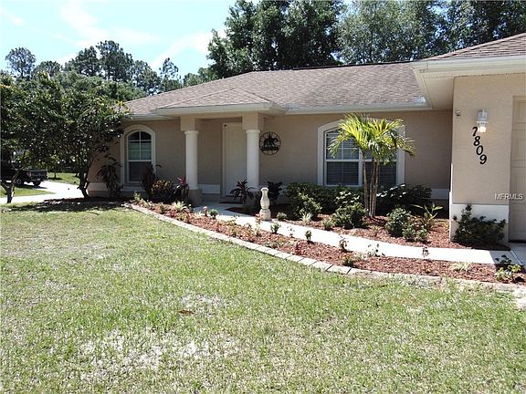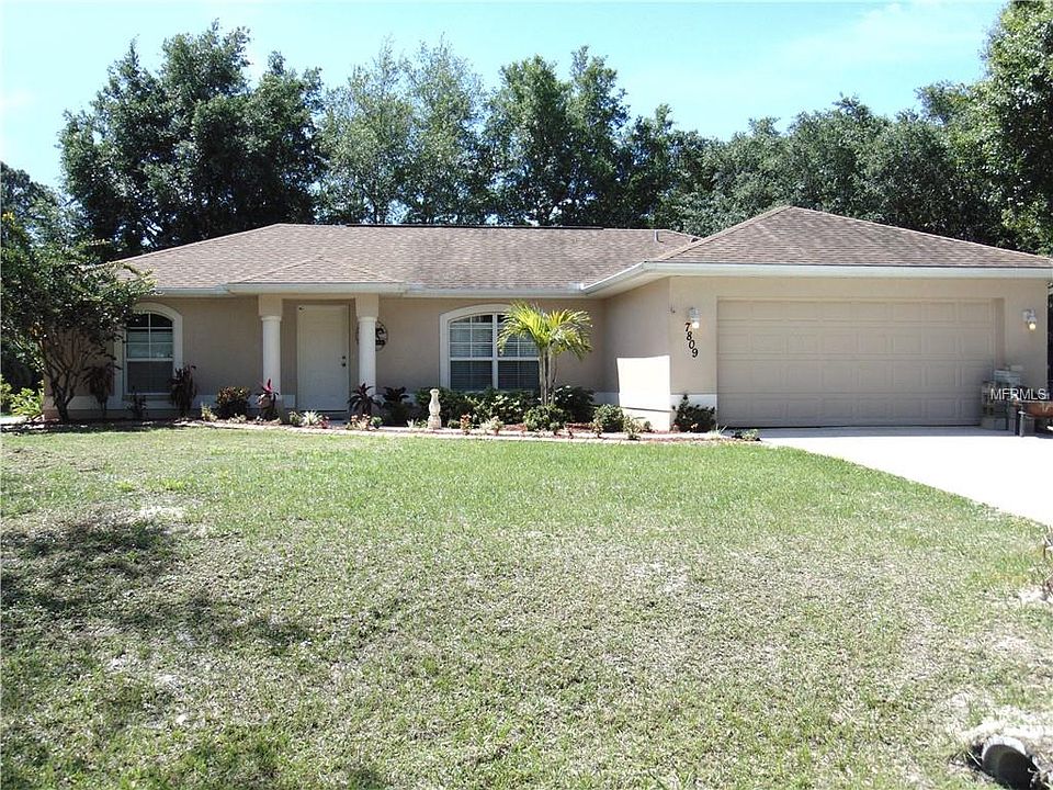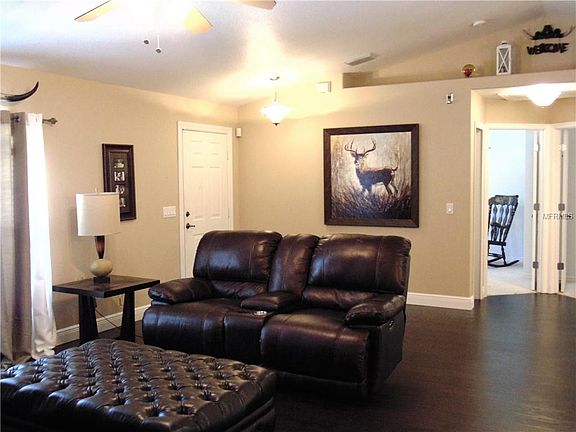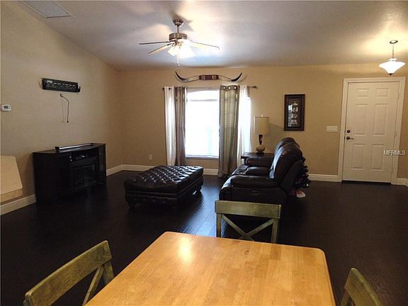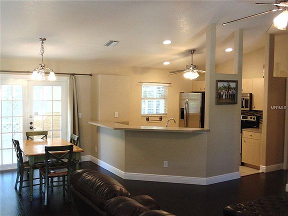 Oversized corner lot home in quite neighborhood. Great for commuting on I-75 or just wanting to enjoy quite streets. The home greats you with bold columns at front entrance. This open floor plan has high cathedral ceilings to make the home seem even larger. Kitchen has a breakfast bar overlooking the dining area and Great Room. Split plan has the 2 guest rooms on side of home and Master Bedroom on the other. Master Bedroom has spacious Master Bath and large walk-in closet. French doors in the Great Room area open to your covered, screened in back lanai. Mature trees provide lovely shaded fenced in back yard. In a X flood zone, flood insurance not mandatory.