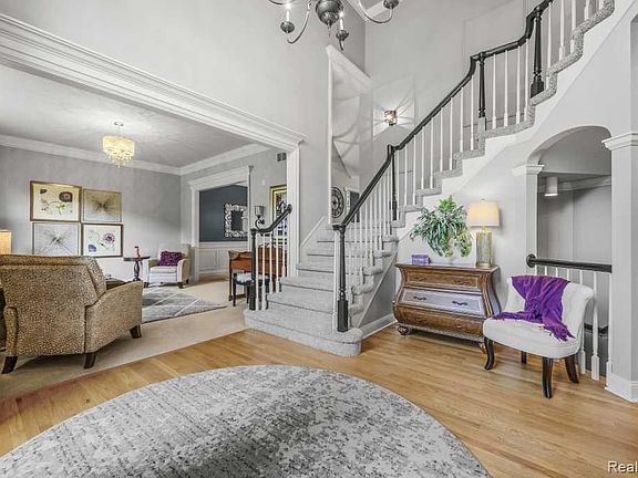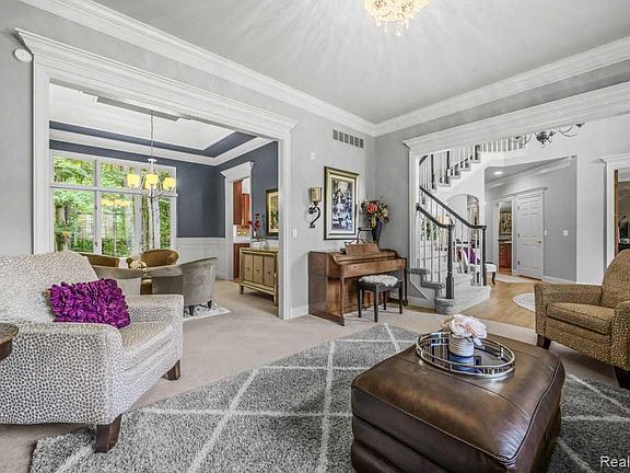 Elegant Colonial Retreat in Hampton Ridge South Nestled on a serene wooded lot on a secluded cul-de-sac, this immaculate colonial in Hampton Ridge South blends timeless elegance with modern comfort and privacy. Spanning 5,171 sq. ft., the expansive layout is thoughtfully designed for both entertaining and everyday living. Step into a grand foyer with hardwood floors, dual staircases, crown molding, leaded glass accents, and designer lighting that set a sophisticated tone throughout. The gourmet kitchen features 42” cherry cabinetry and flows seamlessly into a warm and inviting the gathering room with custom built-ins and a cozy fireplace. Soaring ceilings elevate the ambiance in the trayed dining room and the peaceful primary suite, which boasts two walk-in closets and a spa-inspired bath with granite vanities. With five bedrooms, 3.5 baths, a spacious main floor laundry, a finished walkout basement complete with a gym, and a 3.5-car garage, this home offers abundant space and versatility. Recent updates include dual furnace and AC units (2017), interior paint and select window and carpet replacement (2020), and roof replacement (2023). Outside, enjoy professional landscaping, wooded privacy, a tumbled stone patio, and a two-level composite deck—perfect for relaxing or entertaining.This exceptional property is a rare find and sure to impress. Don’t miss your chance to call it home!