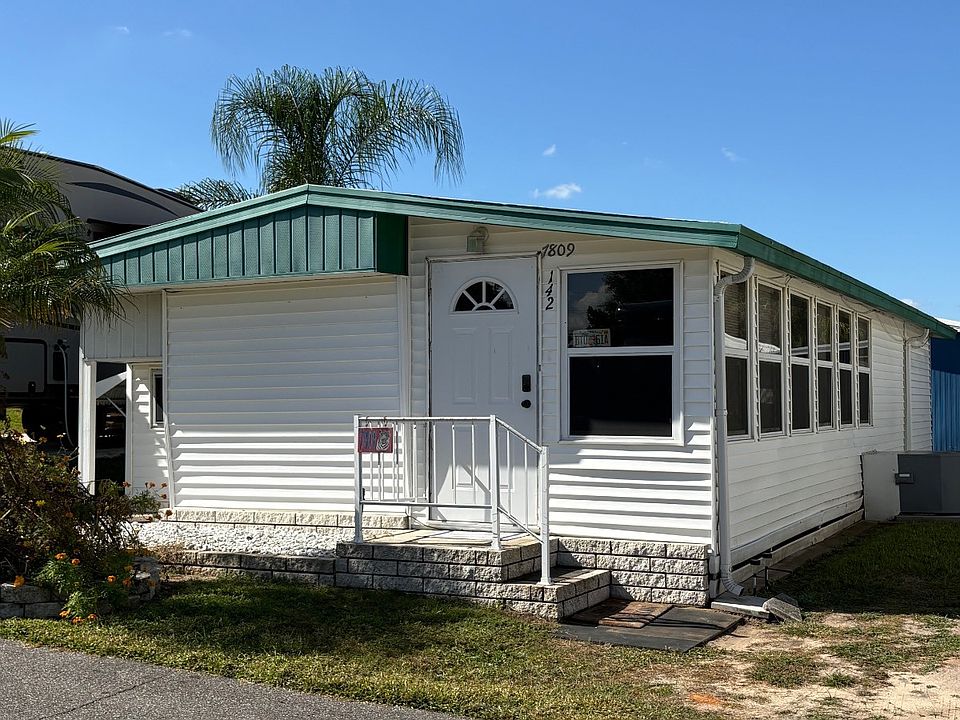 Motivated Seller! This one bedroom, one bathroom home is priced to sell! Low lot rent! Water, sewer, trash, and lawn maintenance are Included in the $615 monthly lot rent. The large shed offers ample storage and even has doors to accommodate a golf cart. The laundry room is equipped with a washer and dryer. Window treatments, bed, chest, desk, and chair remain with the property. This is in a very active 55+ and pet friendly resort community with many amenities and planned social activities. Community approval is required.