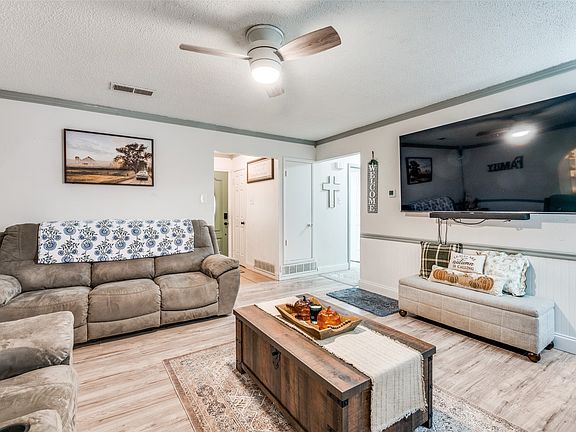 Charming farmhouse-style home in Fort Worth! 3 bedrooms, 1.5 bathrooms, and approximately 1,200 sqft of living space. Beautiful updates throughout, including rustic accents and stylish fixtures. HUGE shaded backyard with mature trees ideal for hosting and entertaining, perfect for outdoor recreation or relaxation. Many updates including BUTCHER BLOCK counters in kitchen, decorative plank ceiling, 2 tone cabinets, FARM sink & more. Prime location, convenient to local amenities, schools, and highways. Perfect for first-time buyers or those seeking a home under $300,000