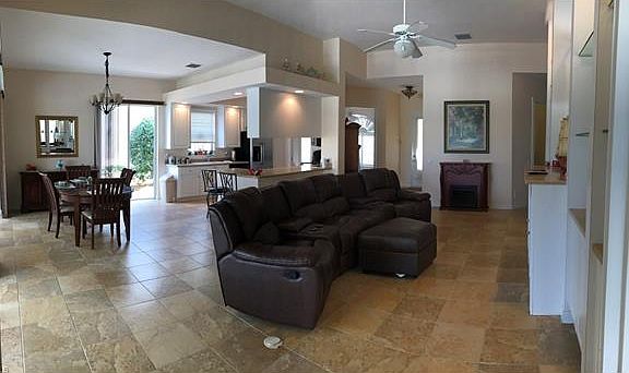 WOW JUST REDUCED OAKMONT WITH A POOL MOTIVATED SELLER. Beautiful Oakmont for sale in Verona Walk! 3 bedroom plus den, 2 1/2 bathroom home has just been freshly painted, furniture is negotiable, tile & laminate through out, crown molding, newer appliances, newer A/C unit, crawl space above garage finished to include A/C, brand new screens in lanai with pool overlooking water. Verona Walk offers 24 hour gated security, jogging and bike paths, restaurant, post office, gas station, post office, beauty salon, travel agency, bank, basket ball court, tennis court, bocce, and pickle ball.