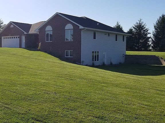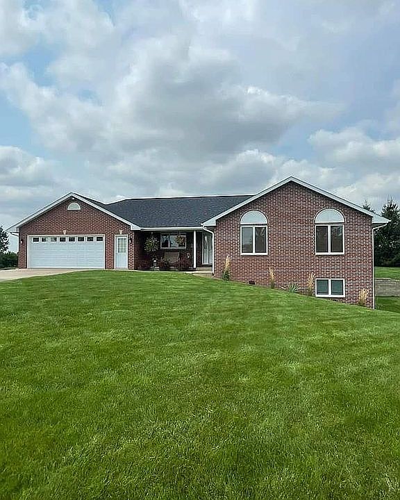 Move right in to this large 2,883 finished square foot 4 bedroom, 3.5 bath walk-out ranch home with main floor living, 3-car tandem garage, 2 fireplaces and stunning tri-state views on a spacious 1 acre lot with mature pine trees for year-round privacy to enjoy your deck and backyard. This home features a large kitchen with breakfast bar, open floor plan dining and great room with vaulted ceilings and a fireplace, same-level deck, plus adjacent patio perfect for entertaining or a hot tub, large main floor master suite, his/hers closets and a double vanity master bath. Additionally there are 2 other main floor bedrooms which share a full bath, a nice-sized laundry room and a half bath. Newly finished lower level has a spacious family room with fireplace and space for a pool table and boasts an additional kitchen, bedroom and abundant storage! Additional stairway in garage connects to lower level living space. Enjoy this quiet cul-de-sac neighborhood that is a short commute to both the south end and downtown Dubuque. Immediate possession available. 7809 Raphael Drive, Dubuque Iowa $415,000.