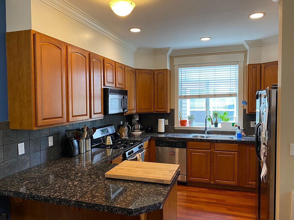 This home is known for its perfect location 10 min walk to Roosevelt station light rail. Zero lot home which means no walls attached, which means you can never hear your neighbors. 3 bedroom 2.5 bath townhouse/single family home. There is a bedroom with a large closet on the ground floor and huge bathroom with bathtub large storage under the stairs and one car garage complete the downstairs. stairs lead up to the main living area with dark cherry hard wood floors, stainless appliances, gas stove, granite counter tops, and oak cabinets. gas fireplace, and a powder room. upstairs are two bedrooms with valted ceiling and walk in closets in both rooms. Large bathroom with double vanity sinks separate shower and a separate bathtub. stackable washer and dryer. There is central AC for those hot summer days. Small outside area with fence. please do a drive by first 7809#B 12th ave NE 98115 Renter pays all utilities. No smoking allowed