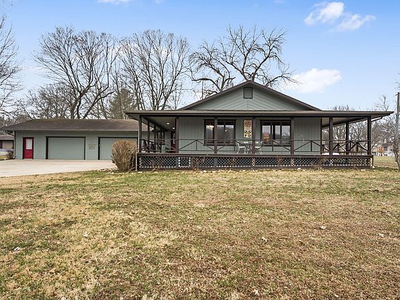 LAKEFRONT LIVING with panoramic views, and a BOAT SLIP INCLUDED, the dock is just steps away! This rare find offers nearly 2 acres, and adjoins Corp land. Enjoy the breathtaking scenery from the wraparound porch or through the large windows & sliding doors that flood the home with natural light. This 3 bed, 2 bath home boasts an attached 3-car garage, wood-paneled ceilings/accent walls, and a stunning stone fireplace--all adding to its charm. A seamless flow between the living, dining, and kitchen areas ensures endless lake views from indoors as well. Incredible opportunity in a prime location! Selling As-Is.