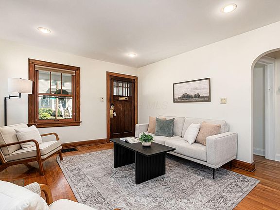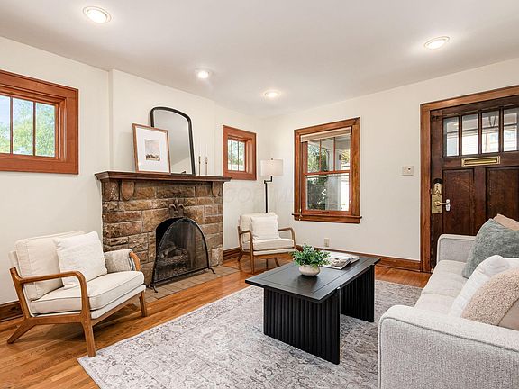 Fabulous brick bungalow in the heart of Schumacher Place/German Village, blending historic charm with thoughtful updates. This rare find features a spacious first-floor primary suite with en suite bath and three closets, including a walk-in. The open floor plan showcases gorgeous hardwood floors, a gas log fireplace, and an updated kitchen with maple cabinets, granite/quartz countertops, and abundant natural light from windows and skylights. Convenient first-floor laundry and mudroom add functionality. Recent updates include new HVAC (2020), hot water tank (2021), waterproofed basement (2022), fresh paint, and more. Replacement windows throughout. Outside, enjoy a private brick patio courtyard, landscaped yard with garden space, and a fully fenced yard—perfect for entertaining.. Spend mornings on the terrific front porch enjoying your coffee. A 2-car garage with room for storage or a workbench completes this exceptional home, just blocks from Schiller Park, restaurants, coffee shops, Nationwide Children's Hospital, Grant Medical Center, and downtown Columbus