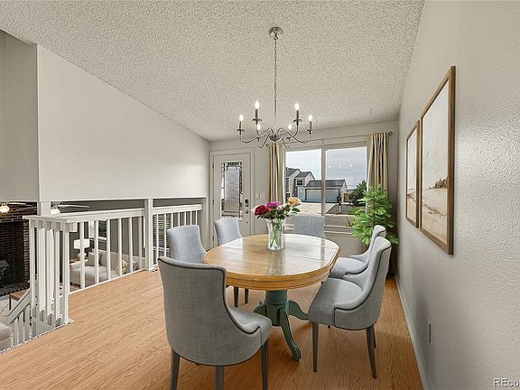 Don't miss this home in Bennett's Centennial neighborhood with great parking space, two-car garage, and a desirable corner lot location. As you enter, you will be greeted by a bright and airy dining room and kitchen featuring vaulted ceilings, a breakfast bar, and a gas range for the resident chef. The connected dining and kitchen area is perfect for gatherings, while the generous living room space provides a comfortable atmosphere to relax with its wood stove and plush new carpeting. The upstairs bathroom is freshly remodeled and features timeless subway tile. The fenced backyard with corner lot location is ideal for outdoor activities, and the covered patio is perfect for enjoying Colorado's beautiful seasons. Move in ready & convenient location with easy commute to Buckley SFB, Southlands Mall, Aurora, and Denver International Airport. Welcome Home!