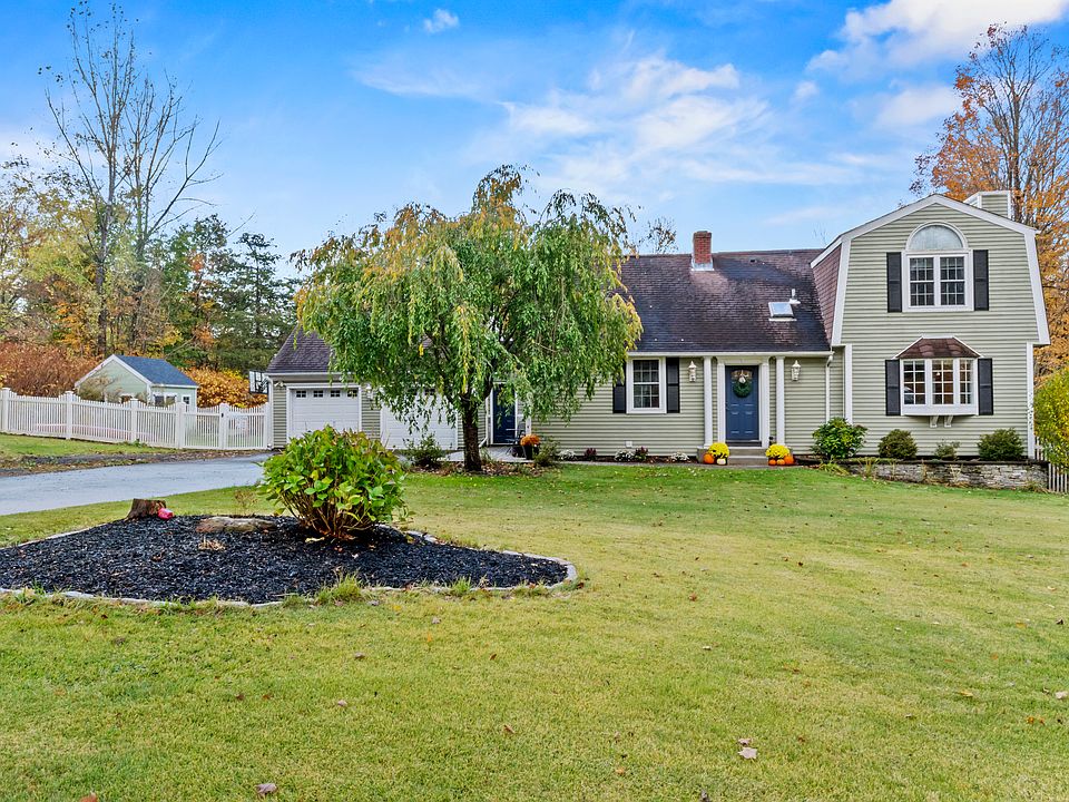 Welcome to 781 Cook Hill Road, where classic charm meets modern updates on a private, nearly 2-acre level lot. This inviting Cape features a convenient breezeway and mudroom; an oversized two-car garage; a large eat-in kitchen with elegant cabinetry - complete with a built-in coffee station and wine bar; and three generously sized bedrooms, including a primary suite with a beautifully bright arched window and a half bath. Delight in cozy evenings by the wood-burning fireplace in the living room, or gather around the gas fireplace in the family/dining room, enjoying the large bay window. You'll find hardwood floors and exquisite woodwork throughout, adding warmth and character to every room. Appreciate central air and the large Trex deck off the back - perfect for entertaining, grilling, or simply enjoying the serene views of the expansive, lightly wooded property, finished with a front-facing white picket fence. The tiled space on the lower level with glass sliders to the backyard provides an added space for a play/recreation room or a personal gym. Whether you're looking for a peaceful retreat or a place to host family and friends, this home checks all the boxes. Recent updates include new electrical wiring, a newer well pressure tank, and a new interior channel drainage system on the lower level. Great schools, parks and farms, don't miss this rare opportunity to own a move-in-ready home on a large, scenic lot in a desirable location!