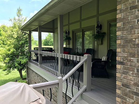 This beautifully landscaped and custom built brick and stucco home on 2 acres is just 2.7 miles off the interstate at the Grand Rivers exit. The first floor of this home features an open concept from the kitchen into the living room. There is a corner Mantel fireplace with gas logs and beautiful cathedral ceilings. The kitchen has a large island with seating, and the dining room is lined with floor to ceiling windows that provide a beautiful view of the backyard. There is an upstairs loft area overlooking the living room that could be used for a bonus room or extra bedroom. The large master suite features a sitting area and 2 spacious closets as well as a master bath with jacuzzi tub. The second full bathroom is in the hallway just across from another bedroom with plenty of closet space. There is tile flooring in bathrooms with carpet throughout and hardwood in the foyer. A beautiful covered deck with wrap around patio area is perfect for entertaining. There is a utility room with oversized walk in closet. A spacious oversized garage with floored attic above. Also, a storage shed in the backyard. The roof was replaced in 2014 and new LP Gas heat and air unit in 2012. For further questions or to request a showing of this home please contact us at 270-703-3944
