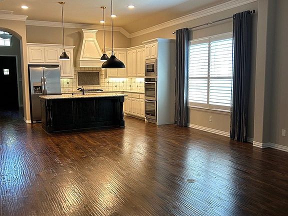 Modern lightingBackyard patioHardwood floorsGranite countersSpacious bathroomMassive walk-in closetCenter island