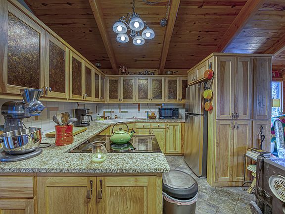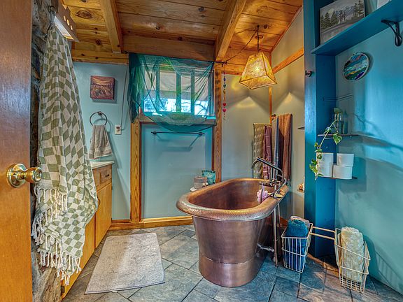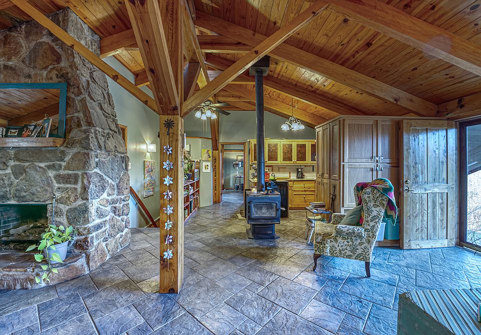 What a superbly special and unique home on very private and secluded acreage just minutes from the famous Dogpatch USA! Nestled in the heart of the rolling wooded mountains above Mill Creek, the property is ideally located between Harrison, AR and Jasper, AR, plus it's only 4 miles to the Pruitt public access on the coveted Buffalo National River. Located at the end of the county road, the seclusion and tranquility this wooded acreage offers is second to none, putting you that much closer to nature by simply walking out your front door. And speaking of the door… when you walk into the home, it can take your breath away. This stunning home is loaded with custom features, unique assets, a funky and warming vibe, and loads of space for any use. No matter what you are looking for: the investor for a vacation rental, a young family looking to build their future with endless potential, that special getaway to the Ozark Mountains, or that homestead to really escape from it all, this place can work for it all. Entering the sunroom, you are entranced by the large tile floors, ample windows, and beautiful copper-colored metal ceiling. Walking through the beautiful double doors into the living space, your eyes are drawn to the large and open wood beams, massive rock fireplace, and open design. The space has a very open but also intimate feel. The large free-standing wood stove is another added bonus for those cold winter days and backup cooking options. Large and plentiful windows add natural light across the living/dining space. Ample custom cabinetry doubles as a bonus “pantry†or storage space leading into the wonderful kitchen. The upper cabinets are complimented by Mica fronts, and the kitchen has many new appliances, including a stainless-steel refrigerator and induction stove/oven. The granite countertops, oversized ceramic sink, and custom tile backsplash are sure to be a conversation piece while entertaining guests in your superb kitchen. Located off the kitchen is the massive and completely custom master suite. This space will have you entranced and not wanting to leave. Vaulted wood ceilings and beams, ornate wood burning stove, extra-large seating area, tile shower with dual showerheads, and a rain shower head in the bathroom; simply amazing! Another bathroom is conveniently accessible off the living room and sports a truly spectacular freestanding copper tub. On the main level, there is also a bonus mudroom with laundry hook-ups, a massive garage with towering side walls, hand-hewn logs, a loft area (which could be converted into a bedroom), and a wonderful covered front porch. The walk-out basement is another fantastic feature sporting 3 more bonus rooms (which could serve as bedrooms or offices), a laundry room, custom native rockwork, a A½ bathroom, and a covered patio. This area could serve as another living area, a sweet game room, or even be rented out as a nightly rental. The land itself embodies the characteristics of the rugged Ozark landscape. The rolling topography, hardwood and cedar timber stands, rock features, wildlife, and more all come together to provide a remarkable experience. As if that was enough… there is a garden shed/workshop, chicken coop, machine shed with concrete pad, garden area, and more! Just imagine all of this while having the Buffalo National River, Ozark National Forest, and Dogpatch USA all right here at your fingertips. This special property is not something you can duplicate, and you don't want to miss this rare opportunity. Call today for your private showing.
