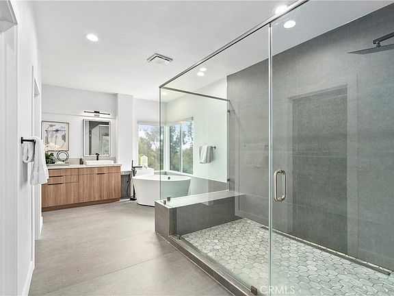Welcome to 781 West Pebble Beach Ave, the crown jewel of Westhills! Reimagined into a modern masterpiece in 2020, this exquisite home was remodeled from top to bottom to provide the ultimate luxury retreat. Situated on a premium and private lot with stunning views, no neighbors behind, and within the gates of prestigious Westhills, the home not only offers a stunning interior but also presents the most enviable and private location in all of La Habra. Spanning 4 bedrooms + a loft, 3 bathrooms, and 3,460 square feet of open-concept living space, the home boasts designer touches throughout, including matte black fixtures, Behr Ultra paint, a custom metal stair bannister, American Walnut engineered wood flooring, wallpaper accents, Shutter Heaven window treatments, West Elm, Lumens, and Lightology light fixtures, a brand new HVAC system with replaced ducting, and too much more to mention... The gourmet kitchen is a chef's delight with an Elkay Quartz basin sink, Cloudburst Concrete stone counters, Palisades Oak and slate gray cabinetry, Silver Strand Quartz backsplash and island counters. It also includes a counter-depth paneled fridge, a central island, a large peninsula with bar seating, built-in banquette seating, and display shelving. Outside, a stunning entertainer's backyard with multiple patio spaces, an outdoor kitchen with a built-in BBQ, and mature landscaping provides the perfect space to enjoy the idyllic OC weather. Additional features of the main level include a family room with a built-in media niche and stone fireplace, a living room with vaulted ceilings and a fireplace clad in Elysium matte basalt graphite stone, a 3-car garage plus a spacious driveway, a dedicated laundry room, and a convenient downstairs bedroom and bathroom - ideal for multi-gen living, an office, or guest room. Upstairs, the primary suite boasts a balcony with serene treetop and hillside vistas and dual walk-in closets, including one with a central island. The primary bathroom exudes elegance with a separate shower and freestanding tub and dual vanities, featuring a carrara stone hexagon shower pan, Bedrosian matte Lava Grey stone flooring, and quartz countertops. A loft with a built-in bar, two secondary bedrooms, and a shared bathroom with dual vanities complete the upper level. Low HOA dues and no Mello-Roos are the cherry on top of this outstanding estate. Opportunities for turn-key modern homes don't come along often - call to schedule a tour today before it's gone!