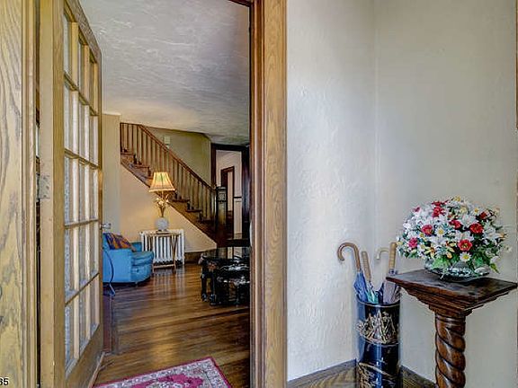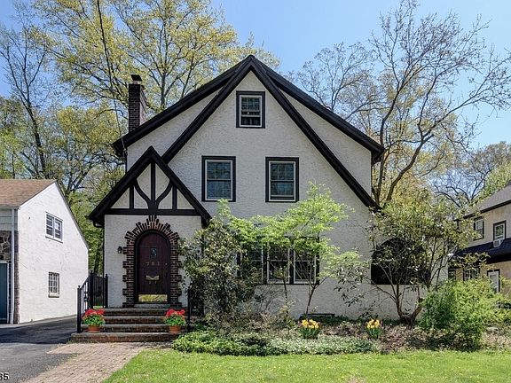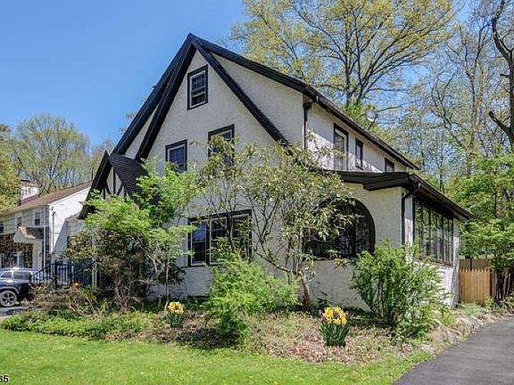 Beautifully maintained Tudor style home located in the coveted Sleepy Hollow area. This wonderful home has 3 floors of living space that includes, eight rooms; four Bedrooms and two full baths. A welcoming entrance vestibule features a lovely tile floor, coat closet and French door that leads to the spacious living room with gorgeous wood floors, beautiful cottage style windows on either side of the brick fireplace which is flanked by gorgeous built-in bookcases with leaded glass doors. The bright and airy sun room with several windows including 3 large bay windows is just off the living room. providing amazing light and views of the slate patio overlooking the private backyard. The formal dining room features a French door that leads to the slate patio and back yard. The eat-in kitchen features a cozy dining nook, small butlers pantry, wood cabinets and updated black appliances including a refrigerator, gas range and a dishwasher. The side door and access to the basement are assessable from the kitchen. The second level also features wood floors, a large linen closet, a full hallway bath with subway tile, three bedrooms including the Master suite with two closets and a full tiled bathroom, with a stall shower. The third floor features an additional bedroom, with two cedar closets and built-in bookcases. Features of this lovely home include: wood floors throughout, a full unfinished basement with a laundry area and toilet. Additionally: two car detached garage, newly paved driveway with ample parking for 4+ cars, paver walkway, 50.29 x 186.74 lot with fenced back yard, gas boiler and a 40 gallon hot water heater. Conveniently located near highways, shopping and Newark/NYC Transportation. Approximately 1 mile to the Plainfield Country Club and just 4 blocks to the NJ Transit Station with access to Newark and Manhattan! No worries, just unpack your bags and move right in!