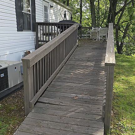This is a 2 master suite trailer located in Holiday Estates and is located on the biggest and best lot in the park. There is also a very large deck and a covered porch! I lived here because it is only 5 minutes away from Ft Meade!!! If you are tired of commuting.... this is the perfect house in a nice quiet clean mobile home park. Lot rent and electricity are extra. Water and trash service included in lot rent.