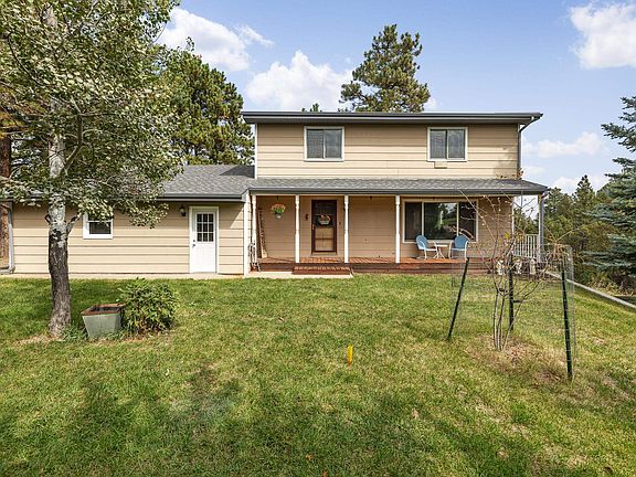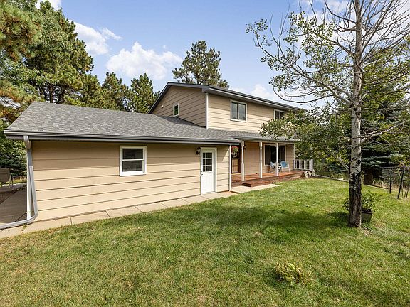 Private Black Hills Retreat with City Views! Perched on nearly an acre (.96) in the Black Hills, this 2,784 sq. ft. home offers the perfect blend of privacy, space, and convenience—just minutes from town. Surrounded by mature trees and set on a private lot with room for RV parking, this property is designed for both comfortable living and impressive entertaining. The main level features a spacious kitchen with beautiful hickory cabinetry and concrete countertops, a formal dining room, two inviting living areas, a cozy wood-burning fireplace, and a convenient half bath. Step outside to a premier outdoor entertainment patio complete with covered outdoor kitchen, bars, new deck, gas fire pits, grilling area, chipping and putting green, and stunning views of the city! Upstairs, you’ll find three bedrooms, a full bath, a laundry room, and a walk-in closet, providing functionality and comfort for everyday living. The walkout basement adds even more versatility with a fourth bedroom, large office, and family room. Highlights include: 4 bedrooms + dedicated office, 2.5 bathrooms, 2-car garage, updated Renewal by Andersen windows with transferable warranty, nearly 1-acre lot with RV parking and plenty of space. Whether you’re hosting gatherings on the large accommodating patio or enjoying quiet evenings by the fireplace, this home captures the essence of Black Hills living—peaceful, private, and close to everything!