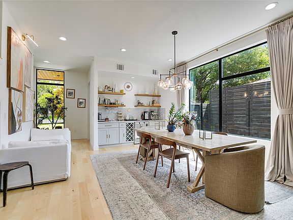Stunning Custom Home in the Heart of Austin. Built in 2023, this thoughtfully designed 4-bedroom, 3.5-bath residence combines architectural elegance with modern luxury. Offering 2,922 sq. ft. of open-concept living, this home is filled with high-end finishes and seamless indoor/outdoor flow. Step into the light-filled foyer and dedicated office, where Beechwood hardwood floors, floor-to-ceiling Cardinal windows and doors, and designer lighting set the tone for sophistication throughout. The chef’s kitchen is a true showstopper, featuring a waterfall island, pot filler, shaker cabinetry, premium stainless appliances, and an adjoining dining area with a custom dry bar, floating shelves, wine fridge, and wine storage. The spacious living area, complete with a gas fireplace, opens to an entertainer’s backyard with a pool, outdoor fireplace, built-in grill, and lush garden—perfect for gatherings year-round. The primary suite impresses with 13-foot ceilings, private patio access, a generous walk-in closet, and a spa-like bath retreat. Upstairs, three secondary bedrooms include one with an en suite bath, plus a game room with sliding glass doors to a private balcony. Situated on a flat, beautifully landscaped lot, the property also offers available impervious cover to build a guest house or MIL suite. ( Buyer to Verify). Located in one of Austin’s most walkable and desirable neighborhoods, this home is zoned to Brentwood Elementary and just minutes from local shops, gyms, and restaurants.