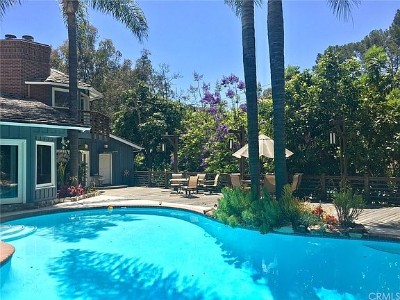 Gorgeous 3 Bedroom/2 Bath custom pool home in exclusive Mar Vista Heights neighborhood. Thoughtfully designed for executive living, entertaining, & privacy! Home offers a bright open floor plan, with high, vaulted & beamed ceilings throughout, spacious rooms, & attention to detail. Large family kitchen w/custom built ins opens to formal dining room & adjacent family room, w/cozy fireplace & views of the amazing yard. Expansive living room w/fireplace & french doors leading to brick patio & peek-a-boo city lights view. Master suite w/3 closets + additional storage space, ensuite bath w/soaking tub, & private retreat room w/fireplace & french door to the rear yard. Guest bedrooms #2 & #3 are located in their own wing of the home & share the large guest bath. Bird's eye views from your own private turret, w/wrap around balcony for stargazing. Rear yard w/deck overlooks your private orchard w/numerous avocado trees. Refreshing swimming pool for those hot summer days, & a charming gazebo for your morning coffee or evening glass of wine. Small walk in basement could be finished as a wine cellar... Attic storage space adjacent to turret, Huge 3 car garage w/built in storage & workshop area! This is truly an exceptional home & a must see.
