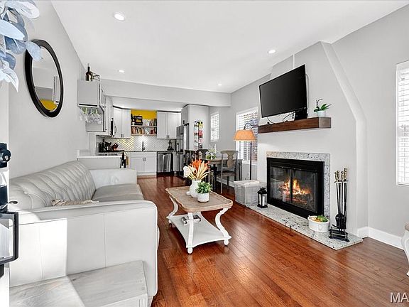 Welcome to this warm and inviting farmhouse-style home tucked in the heart of Shrewsbury — just a short stroll to Wehner Park and the charming shops and restaurants of Old Webster and Old Orchard. Completely renovated in 2022, this home blends timeless character with modern comfort and style. Step inside to a bright, open floor plan filled with natural light and real hardwood floors. The kitchen is a showpiece — featuring granite countertops, white shaker cabinets, stainless appliances (including a Smart Fridge), and solid oak shelves crafted from a Wisconsin sawmill. The lantern-tile backsplash and crystal pulls add just the right touch of charm. The cozy living area centers around a wood-burning fireplace, perfect for relaxing evenings at home. The spacious primary suite offers a custom walk-in closet and a luxurious bath with double vanities and a rain shower. Thoughtful details continue throughout — a cedar-lined hallway linen closet, custom storage in the laundry and secondary bath, and beautifully updated tile work. Enjoy mornings on the deck or afternoons in the oversized fenced backyard surrounded by friendly neighbors and walkable community amenities. With parks, restaurants, and local events just steps away, this two-bedroom, two-bath gem perfectly captures the charm and convenience of Shrewsbury living.