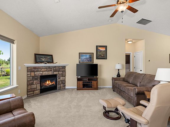 Enjoy main floor living in this charming 3 bed, 2 bath rancher that backs right up to Fairways Golf Course with a 2-car oversized garage with workshop and fenced RV parking. This gem boasts an open floor plan with 3 spacious bedrooms, 2 bathrooms, and an open concept kitchen with hard surface countertops and Huntwood cabinets. Other features include a main floor master suite with double vanity and walk-in closet, vaulted ceilings, cozy gas fireplace, sprinkler system, and gas forced air with central A/C for year-round comfort. Enjoy your summers lounging on your back patio or hosting family and friends in your fenced backyard which features a retractable awning, impeccable landscaping, and views of the Fairways Golf Course. Conveniently located within 11 minutes of shopping with easy access to the freeway, Spokane, and Cheney.
