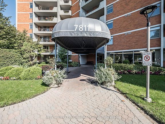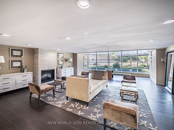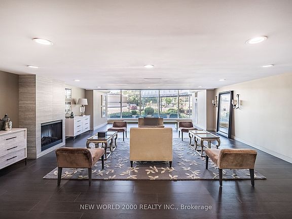 A Stunning corner suite in Old Thornhill Village-Your dream awaits! Welcome to your exquisite two-bedroom condo plus a full size den in the upscale Summit boutique building! Nestled in the heart of Old Thornhill Village, this remarkable corner unit boasts over 1,200 sq.ft of luxurious living space. Covered in hardwood flooring, ceramic tile & smooth ceilings throughout plus an impressive 127 sq. ft. private balcony with wooden tiles, offering breathtaking views of the serene treetops. Step into a grand foyer that leads you to a spacious living area featuring a large dining room & an elegant eat-in kitchen, with stainless steel appliances & a double stainless steel sink, perfect for entertaining or family gatherings. The kitchen showcases beautiful granite countertops, stylish backsplash, and upgraded cabinetry. Spacious bedrooms are designed with comfort in mind. Your main bedroom easily accommodates a king-size bed and includes an oversized en-suite shower for your ultimate relaxation. Enjoy the warmth of a cozy den, complete with an electric fireplace & a window that invites natural light. Each corner of this meticulously updated unit features upgraded bathrooms, with glass enclosures, stone surfaces & modern fixtures, including newer breaker panels, light switches, doors, trims, & stunning crown moulding. With a northwest exposure, relish in the tranquility of your picturesque views while benefiting from maintenance fees that cover fast unlimited high-speed internet, movie & TV channels, heat, hydro, water, air conditioning, building insurance & parking. Building amenities enhance your lifestyle with an exercise room, sauna, outdoor pool & recreation room, all secured by a comprehensive security system. Conveniently located close to shops & restaurants, transportation, schools & places of worship, this condo is perfect for those seeking both luxury & accessibility. Don't miss the chance to make this exceptional property your new home!