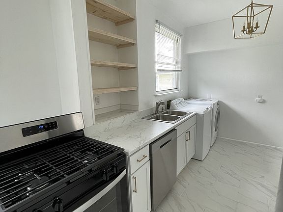 Stainless steel fridgeMarble tileLarge screened in porchTons of closet spaceIn-unit laundryCentral air and heatLarge separate dining room