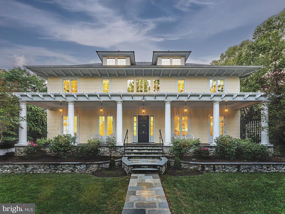 Gorgeous Energy Star Certified home overlooking the Potomac in prestigious Wellington Villa. Enjoy river breezes from your gracious 56' bluestone front porch or expansive vaulted rear screen porch. Built on land once belonging to George Washington's Mount Vernon Estate. Chef's kitchen with high-end energy efficient appliances, induction cooking, marble baking center and butler's pantry. Spacious primary suite features marble-appointed bath with soaking tub, and double walk-in closets. 7 bedrooms, 5 1/2 baths, multiple home offie options, home theatre, rec room, hobby room, and exercise room. Even includes provisions for a future elevator! Two car garage plus workshop has unfinished carriage house space above. Extraordinary craftsmanship and design. One of Alexandria's most unique homes, designed by award-winning DC architect David Jones. Built in 2007, brilliantly blending sophisticated energy-efficient systems with elegant 1920's grandeur. Over 7000 sqft of eco-conscious living, meticulously crafted with foam insulated walls, 4-zone geothermal heat pump, triple pane windows, solar hot water, energy recovery ventilation, DaVinci roof, EV Level 2 charging outlet, and much, much more! Carefully curated with period finishes throughout, including 10' ceilings, extravagant moldings, custom tile work, and the grand entertaining spaces of yesteryear. Professionally landscaped with 20 zone automatic sprinkler system. Featured in both Alexandria Times and The Washington Post. One of a kind! Waterfront lot across the street at 7213 Southdown Rd is also listed. Agent related to owner.